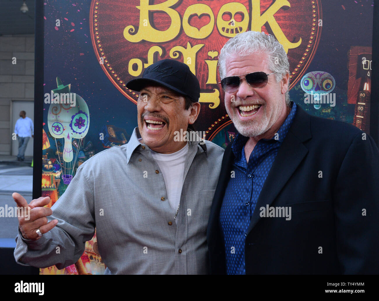 Cast Members Danny Trejo L And Ron Perlman Attend The Premiere Of The Animated Motion Picture Romantic Comedy The Book Of Life At Regal Cinemas L A Live In Los Angeles On October